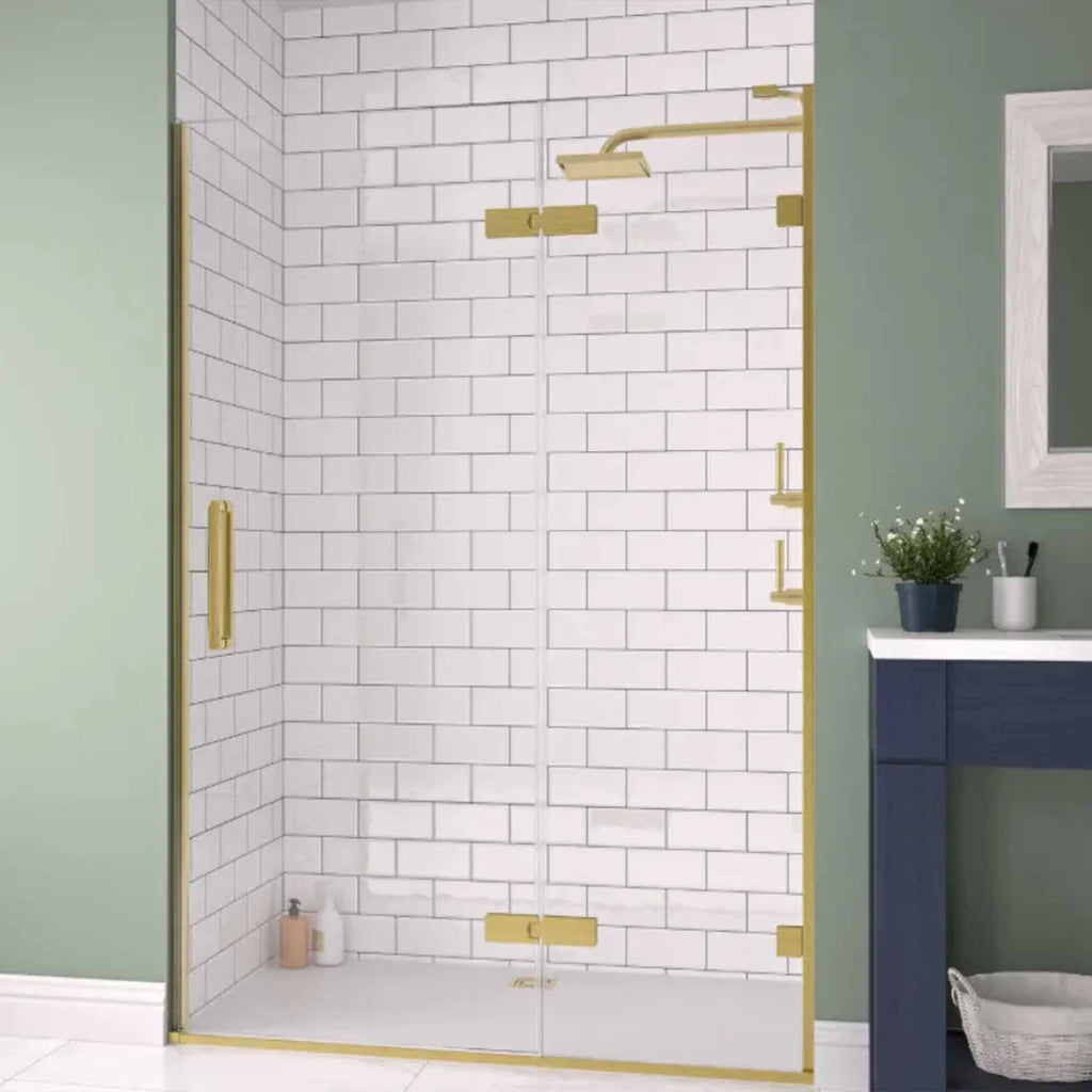 Aureo Ten Hinge And Inline Shower Door In Recess - Brushed Brass