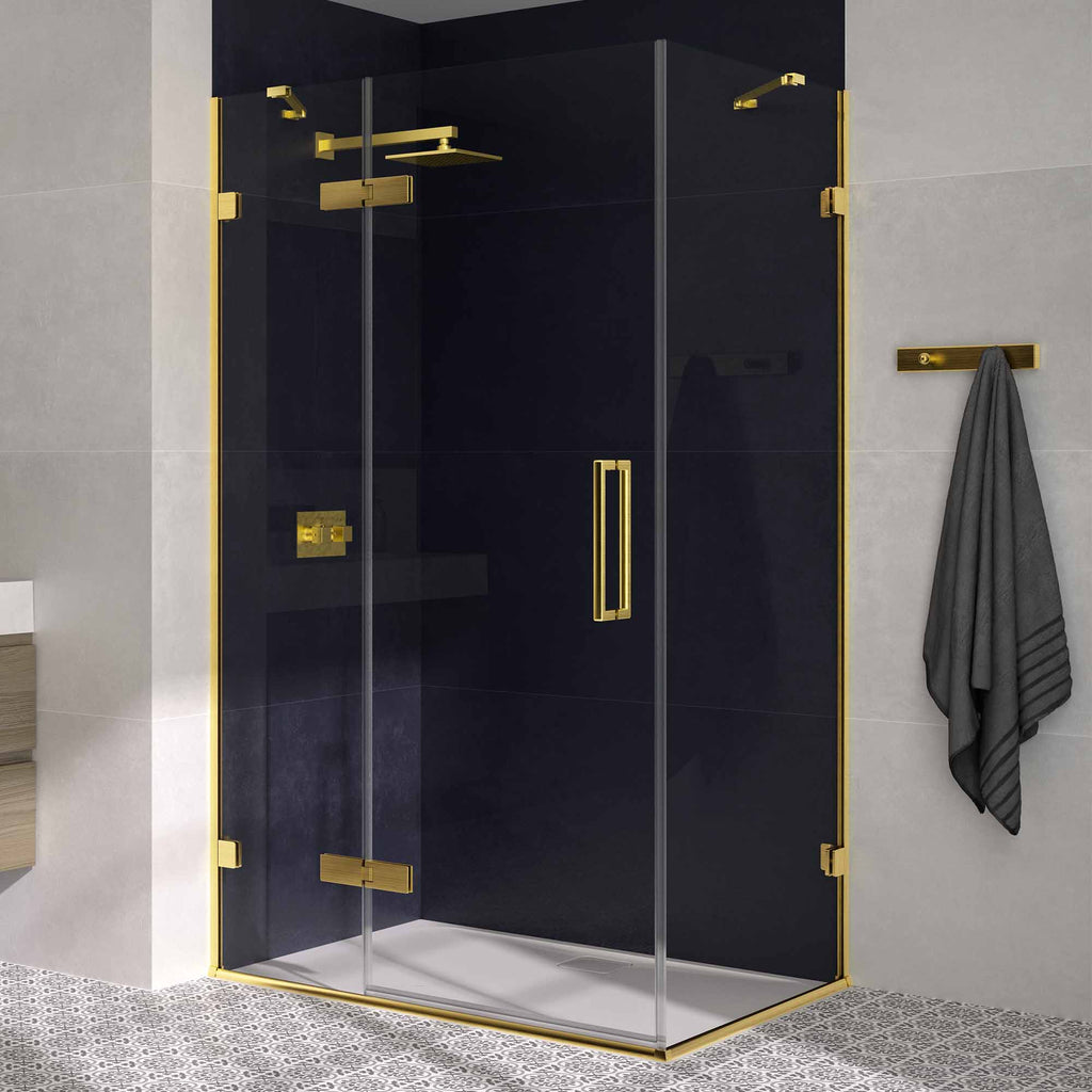 Aureo Ten Hinge And Inline Shower Door With Side Panel - Brushed Brass