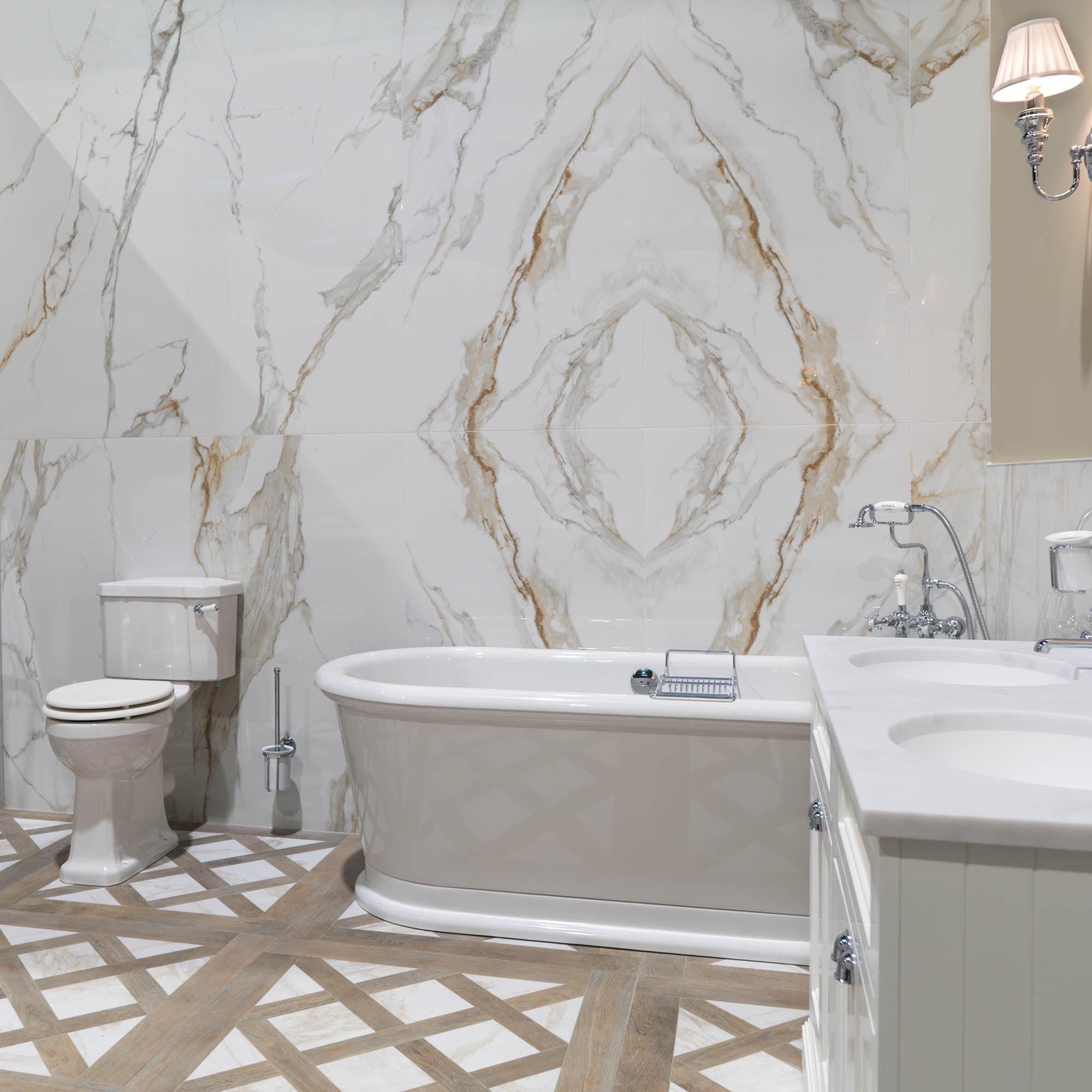 Premiere White 4D Shaped Marble Effect Porcelain Tile 100x100cm Matt