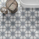 Aruba Daisy Blue Pattern Porcelain Tile 22x22cm Matt