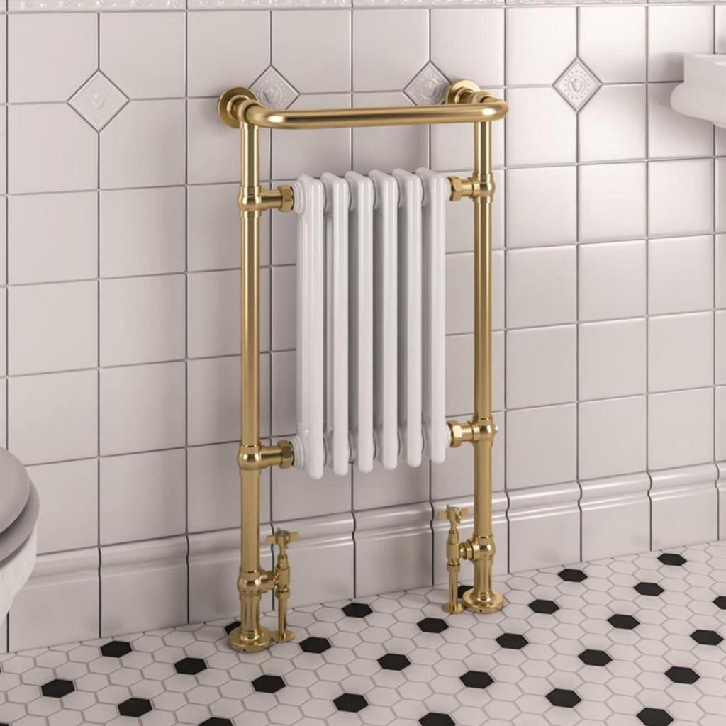 Ashbourne Traditional Towel Rail Radiator - Brushed Brass & White