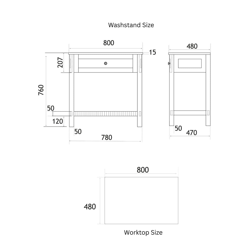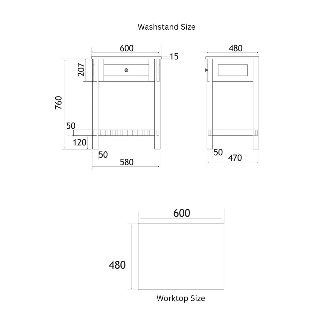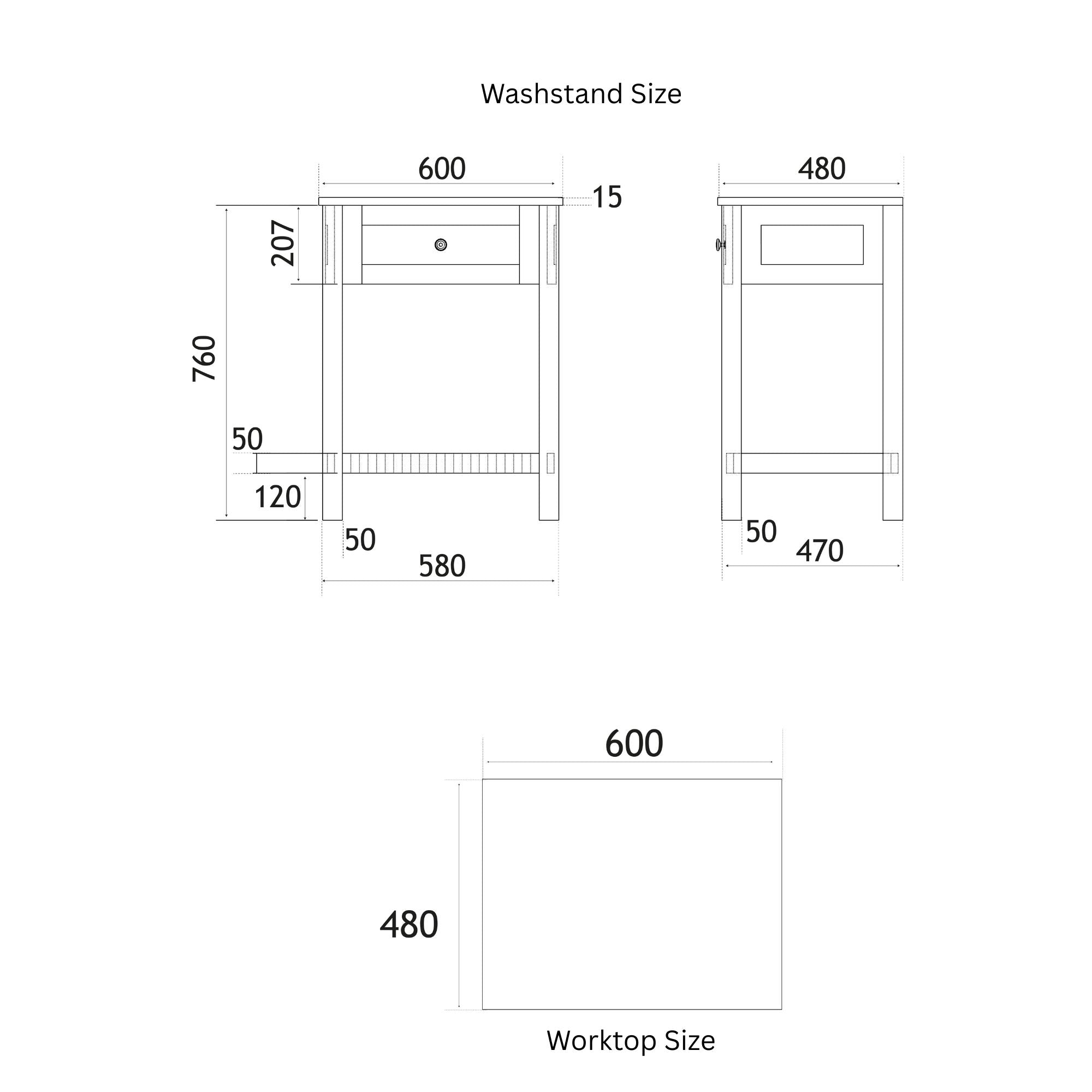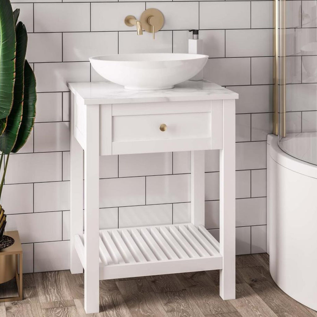 Bromley Floorstanding Washstand With Worktop - Matt White