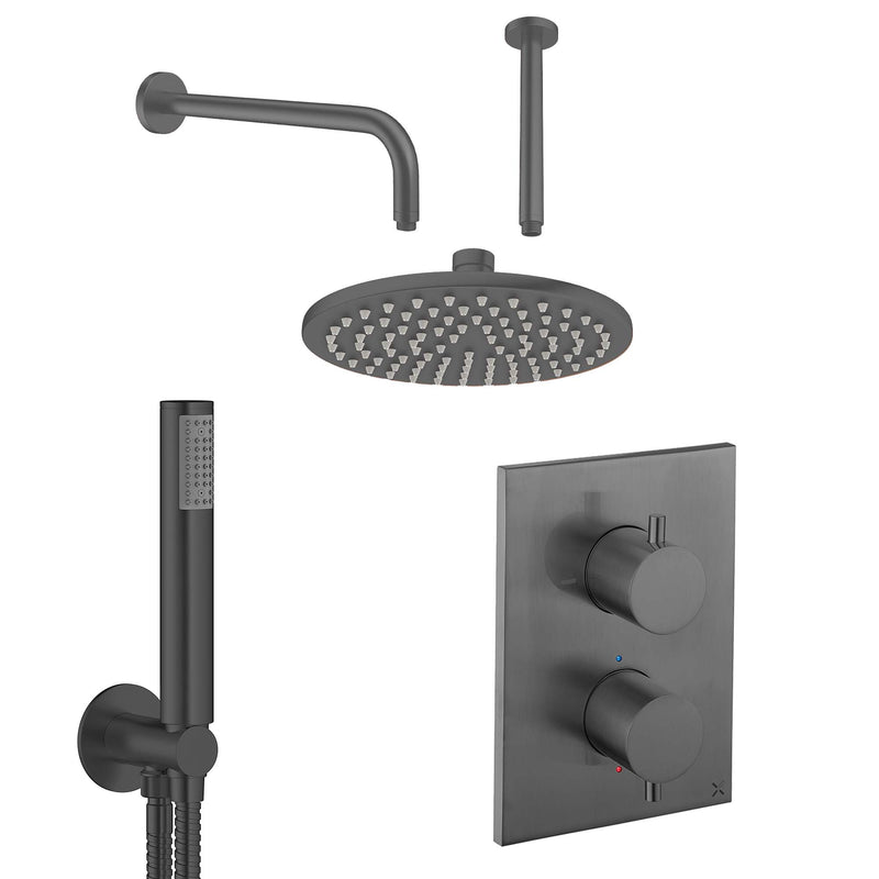 Crosswater MPRO 2 Outlet Thermostatic Shower Valve With Pencil Handset and Fixed Overhead