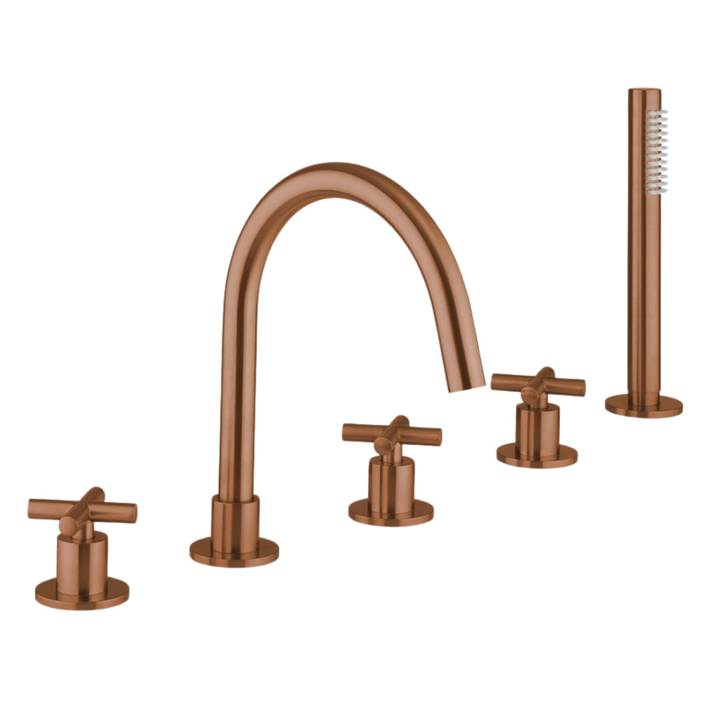 Crosswater MPRO Crosshead Highneck 5 Tap Hole Deck Mounted Bath Mixer with Shower Handset