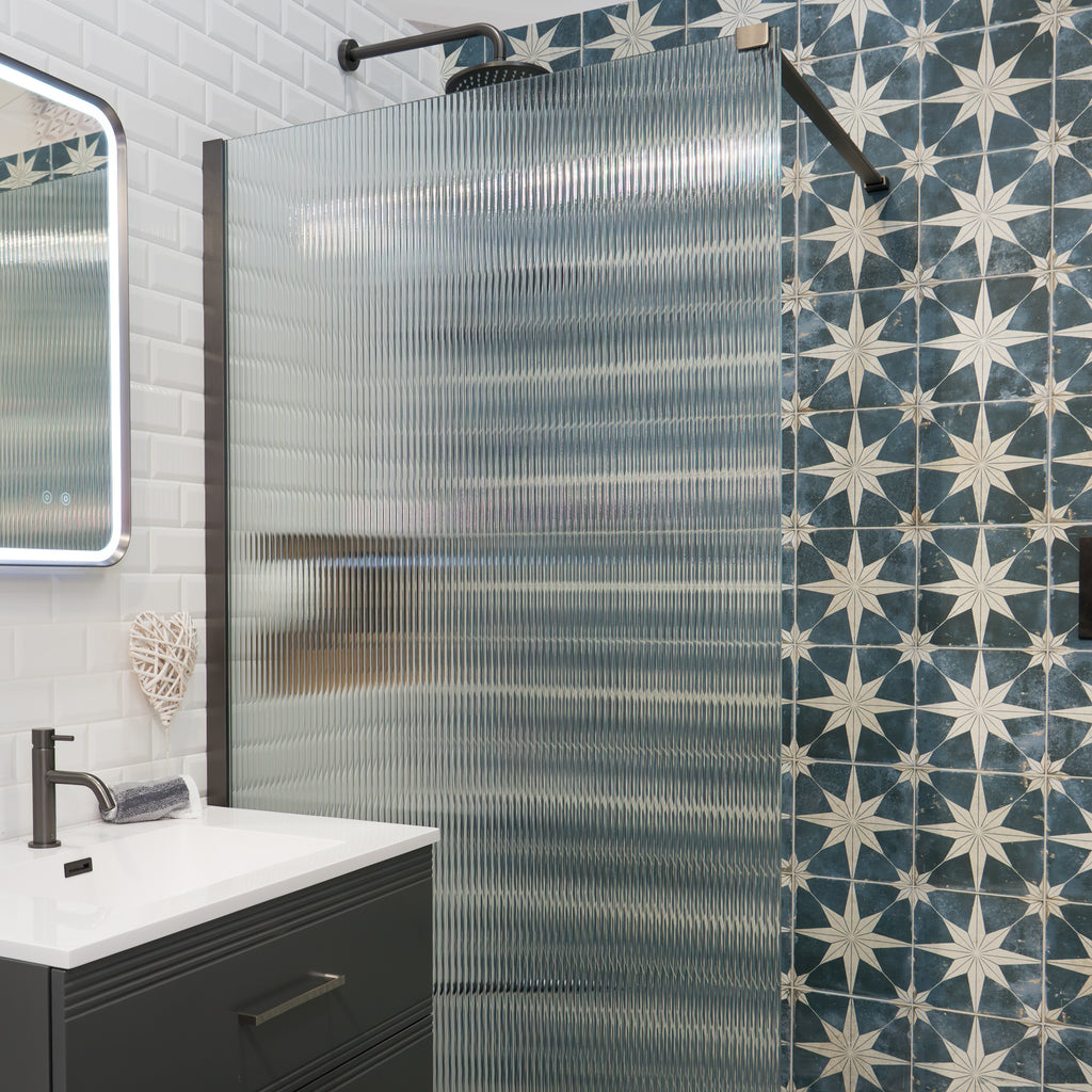 Granlusso™ 8 Fluted Glass Frameless Wetroom Shower Screen