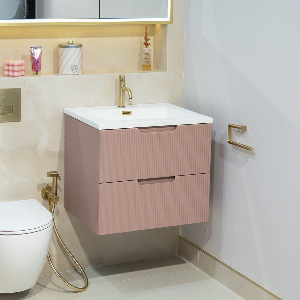 Granlusso™ Opus Pink Fluted Wall Mounted Vanity Unit With Solid Surface Washbasin