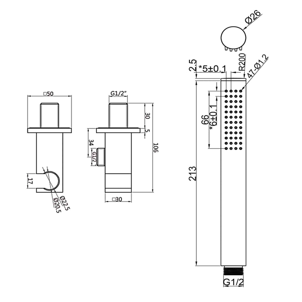 Granlusso Portofino 2 Outlet Thermostatic Shower Valve With Pencil Handset and Bath Spout - Brushed Brass