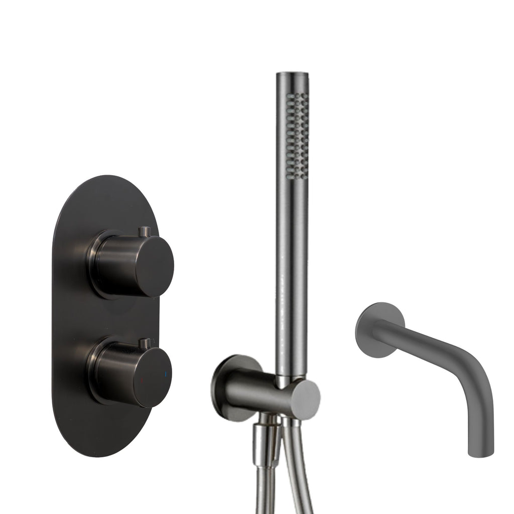 Granlusso Portofino 2 Outlet Thermostatic Shower Valve With Pencil Handset and Bath Spout - Gunmetal