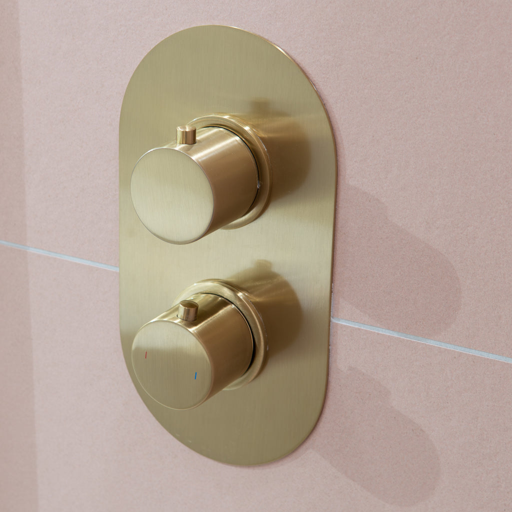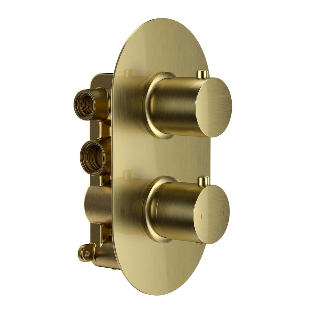 Granlusso Portofino 2 Outlet Thermostatic Shower Valve With Slide Rail Pencil Handset and Fixed Overhead - Brushed Brass
