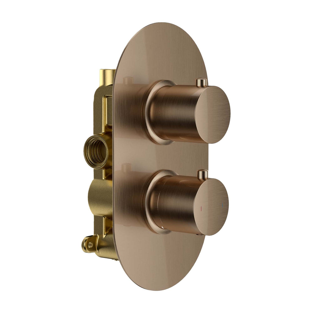 Granlusso Portofino 2 Outlet Thermostatic Shower Valve With Slide Rail Pencil Handset and Fixed Overhead - Brushed Bronze