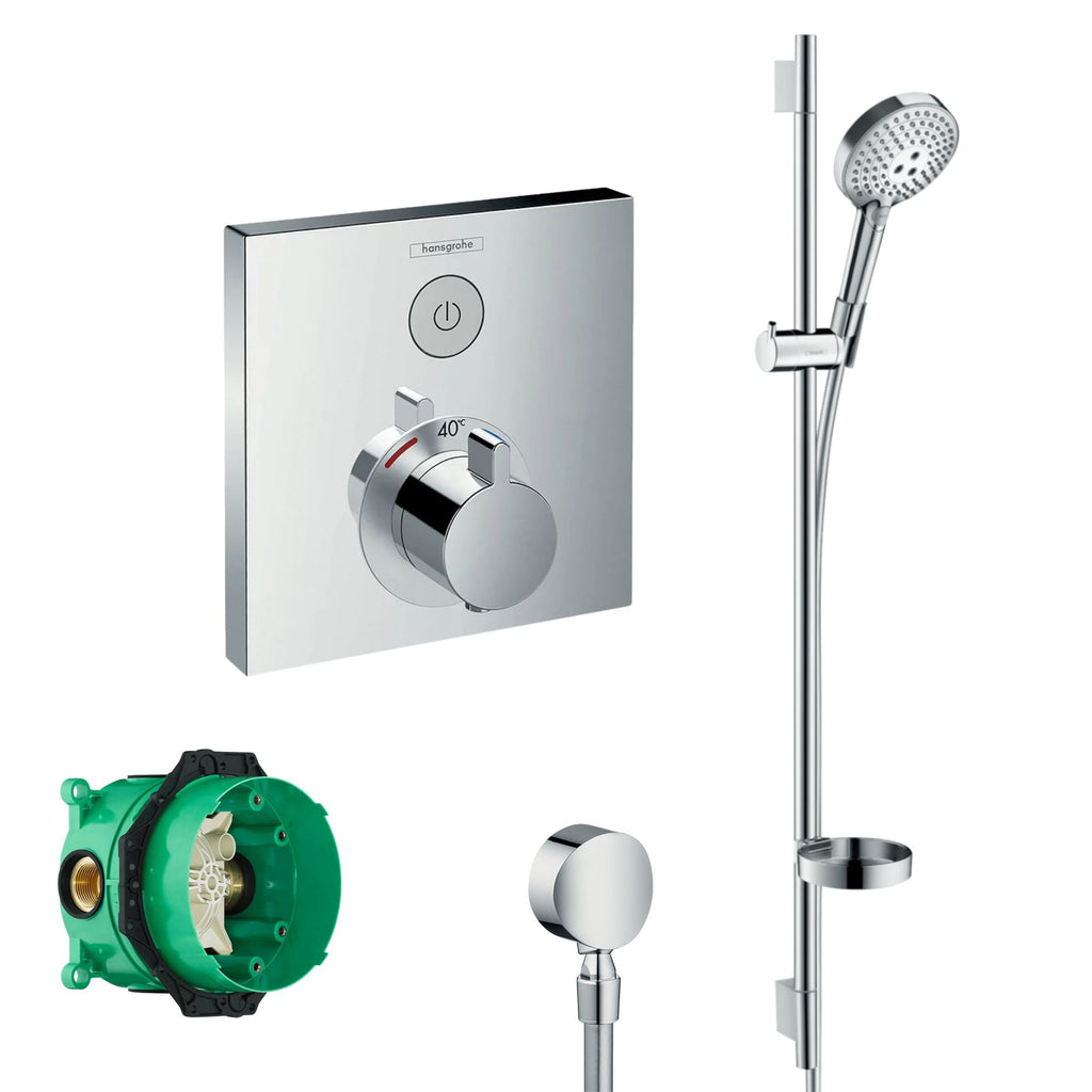Hansgrohe Square 1-Outlet Push Thermo Shower Valve With Raindance Select S Slide Rail Kit - Chrome