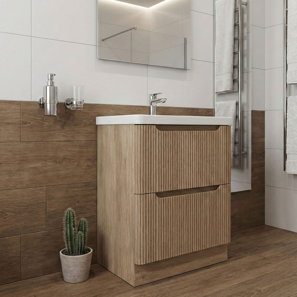 Hudson 600 Fluted Floor Standing Vanity Unit With Washbasin - Country Oak