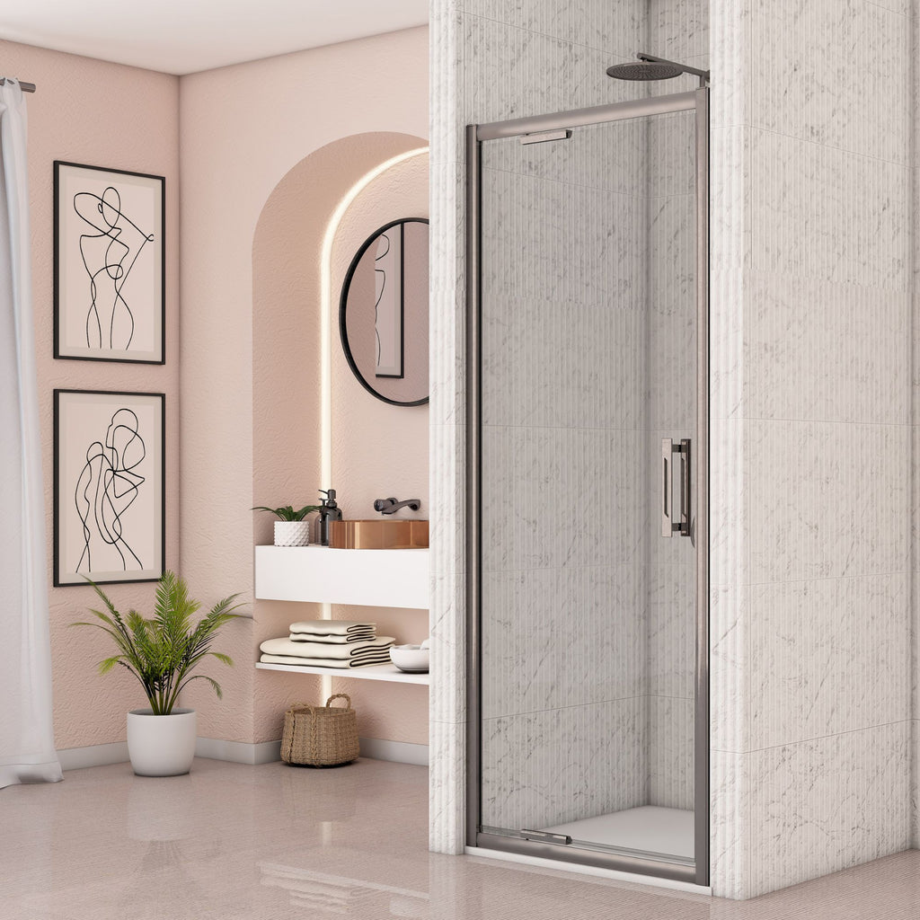 Image i9 Pivot Inswing Shower Door With Optional Side Panel - Brushed Nickel