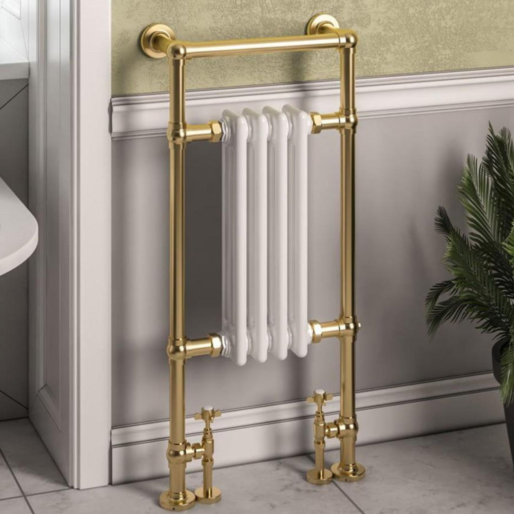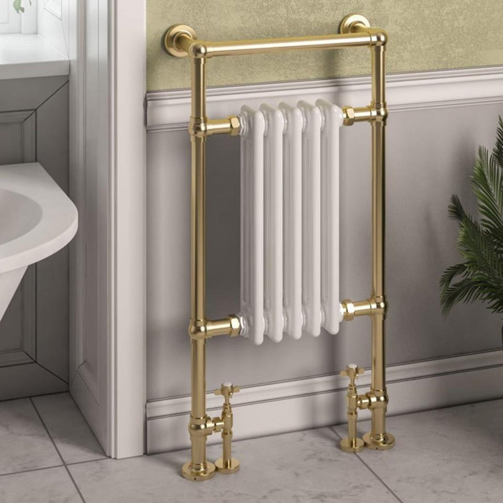 Marston Traditional Towel Rail Radiator - Brushed Brass & White