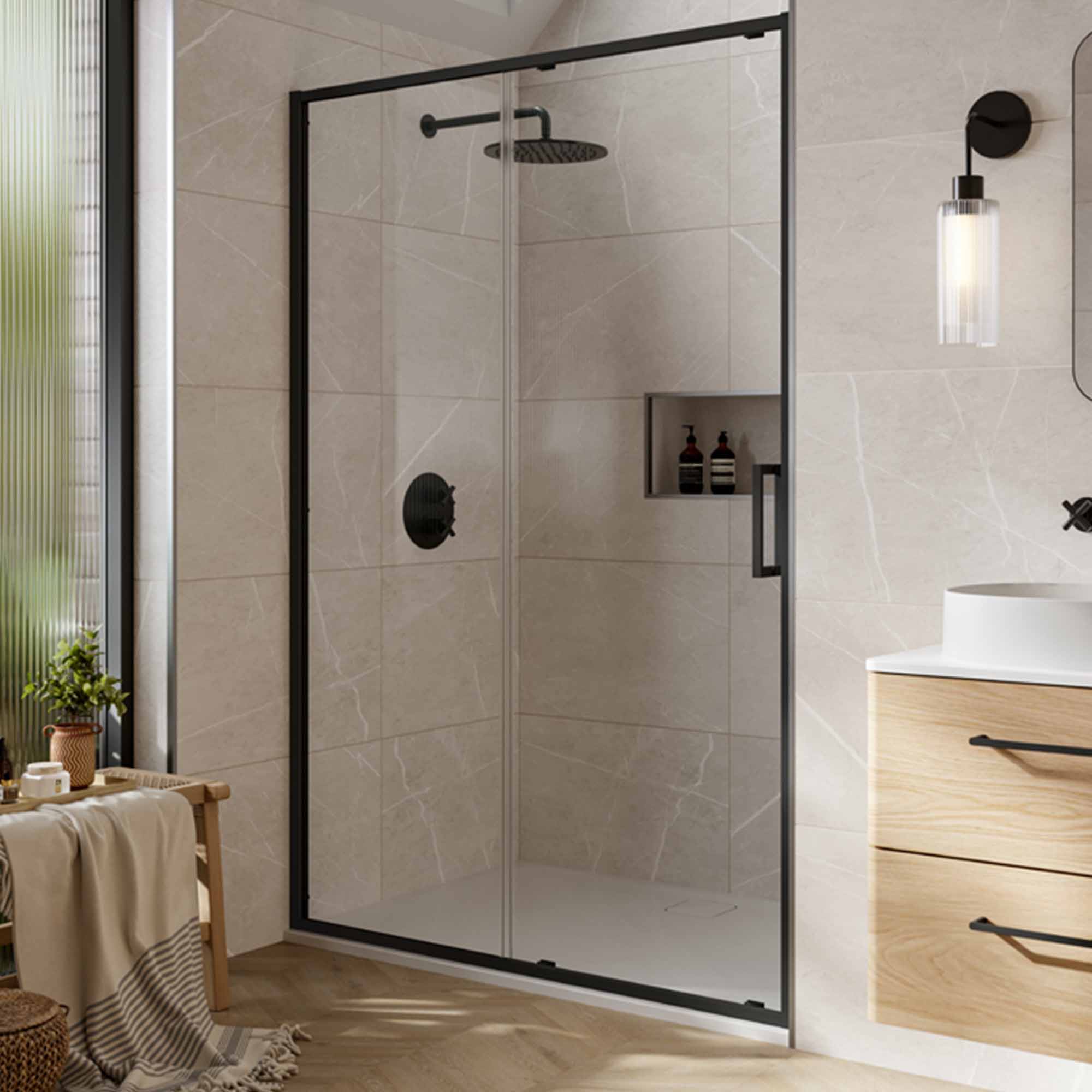 Merlyn 6 Series Sleek Sliding Shower Door With Side Panel - Matt Black