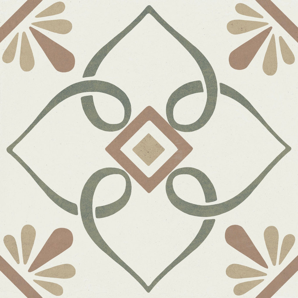 Provenza Green Petals Pattern Porcelain Tile 22x22cm Matt