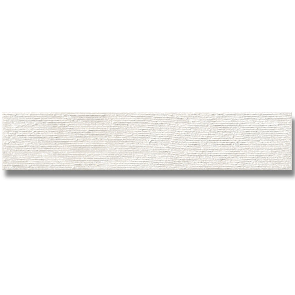 Trace White Brushed Decor Porcelain Tile 6x30cm Matt